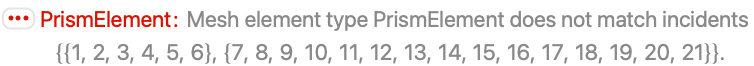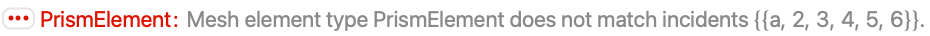 - For a PrismElement, the face incidents must be counterclockwise. An element {i1,i2,i3,i4,i5,i6} has the face incidents {i1,i2,i3,0}, {i4,i5,i6,0}, {i2,i5,i6,i3}, {i3,i6,i4,i1} and {i1,i4,i5,i2} for the five faces.