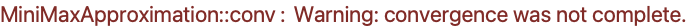 There are several ways in which MiniMaxApproximation can fail. In these cases, you will usually get a message indicating what probably went wrong and what you can do to avoid the problem. For example, if you ask for a minimax approximation of degree (m,k), MiniMaxApproximation will look for a rational minimax approximation such that the relative error oscillates in sign and the extreme values are achieved