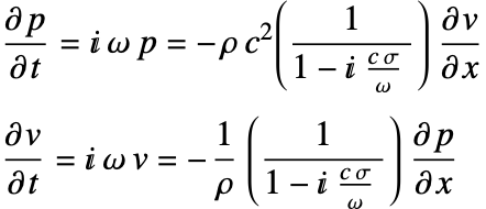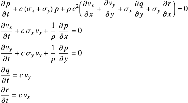 Apply the harmonic wave relation again to turn the equations back into time domain form. Finally, the coupled first-order wave equations with PML become: