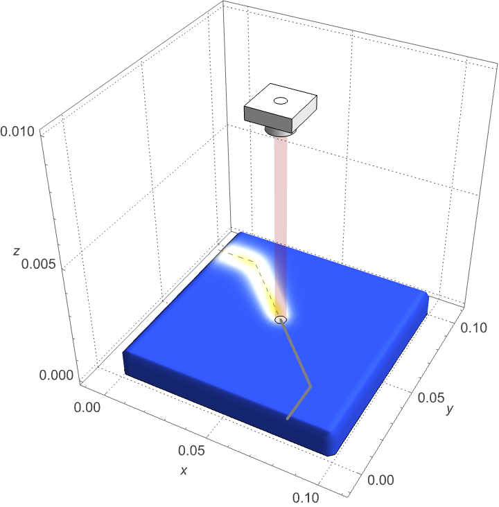 In this model, the laser beam provides the thermal energy to weld the steel pieces and is modeled by the heat source term
