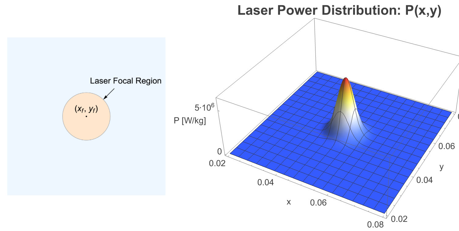 in the heat equation (2). When applying the laser beam, all particles within the focal region are irradiated and heated up simultaneously.