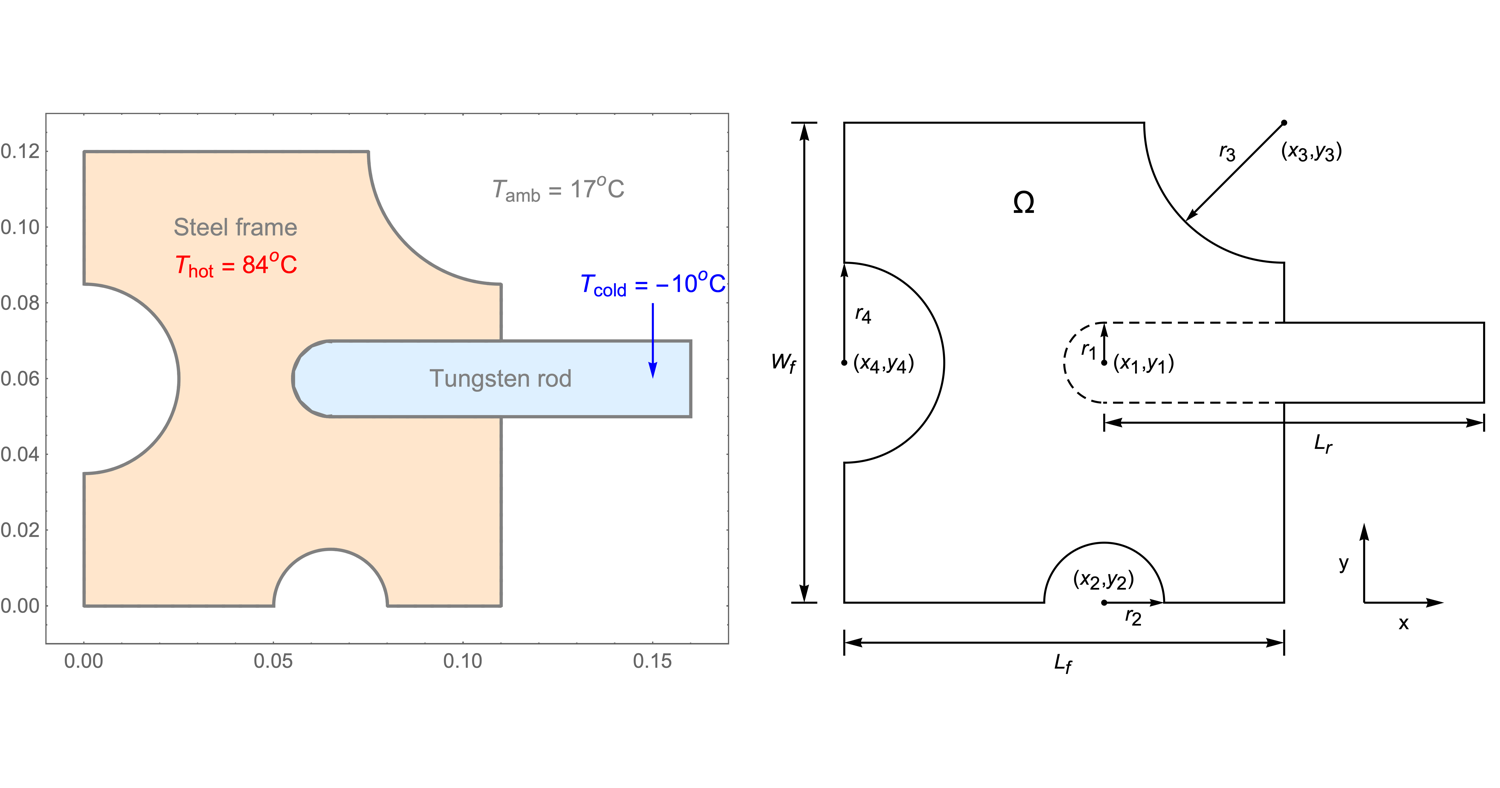 To analyze the heat flow between the assembled rod and frame, the PDE model is solved from