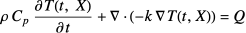 . The partial differential equation (PDE) model describes how thermal energy is transported over time in a medium with density