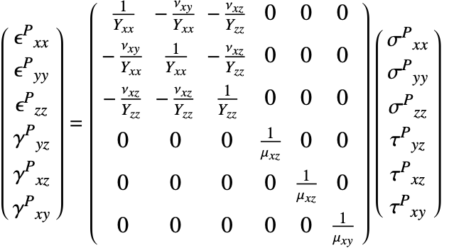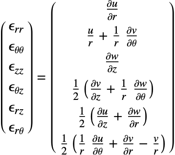 The SolidMechanicsStrain function computes the normal and shear strains for each independent direction. The function returns a SymmetrizedArray that contains an expression representing the strain components in the various directions. The SymmetrizedArray enforces symmetry when present and is compact. The strains returned have the following order: