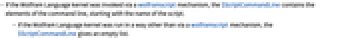 - If the Wolfram Language kernel was invoked via a wolframscript mechanism, the $ScriptCommandLine contains the elements of the command line, starting with the name of the script.
