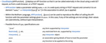 - When called in the cloud, APIFunction[params,fun] by default returns a textual Wolfram Language form of the result.
