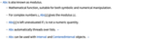 - For complex numbers z, Abs[z] gives the modulus
