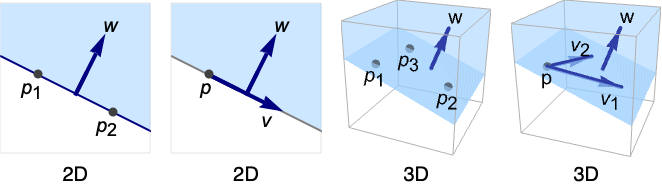 if the pi are affinely independent or the vi are linearly independent. - AffineHalfSpace can be used in Graphics and Graphics3D.