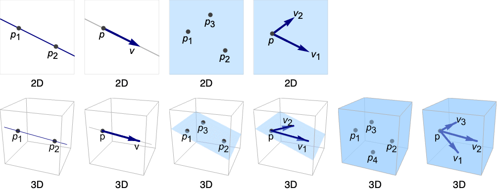 . The dimension is k if the pi are affinely independent or the vi are linearly independent. - AffineSpace can be used in Graphics and Graphics3D.