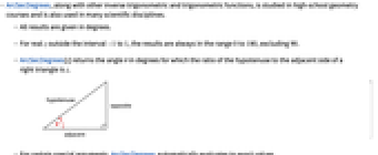 - ArcSecDegrees, along with other inverse trigonometric and trigonometric functions, is studied in high-school geometry courses and is also used in many scientific disciplines.