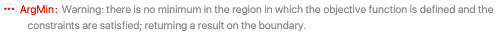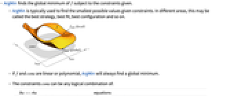 - If f and cons are linear or polynomial, ArgMin will always find a global minimum.