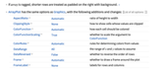- ArrayPlot has the same options as Graphics, with the following additions and changes: [List of all options]