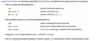 - AssessmentFunction[key,f] for a function f is equivalent to AssessmentFunction[key,<|"Comparator"f|>].