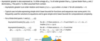 - Asymptotic greater is also expressed as f is little-omega of g, f is of order greater than g, f grows faster than g, and f dominates g. The point x* is often assumed from context.