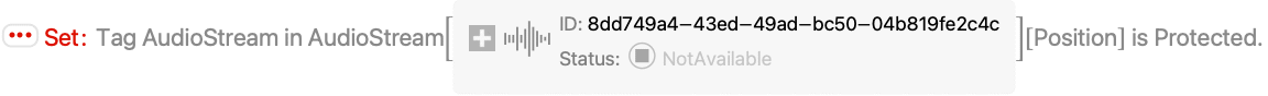 "AudioChannelAssignment" how to assign audio channels to outputs "AudioOutputDevice" audio output device to use for playback "BufferSize" number of samples in each buffer "CurrentAudio" snippet of the current audio "ID" the stream ID "Looping" whether to loop the playback "Position" position of the playback given as a time Quantity "SampleRate" number of samples per second "SoundVolume" sound volume "Status" status of the stream - Possible settings for "Status" include "Playing", "Recording", "Paused" or "Stopped".