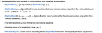 - PiecewiseExpand can be used to expand symbolic BSplineBasis functions into explicit piecewise polynomials.