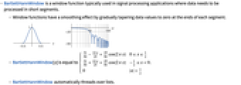 - BartlettHannWindow is a window function typically used in signal processing applications where data needs to be processed in short segments.