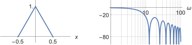 Discrete-time Fourier transform of a normalized discrete Bartlett window of length 15: