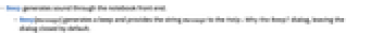 - Beep[message] generates a beep and provides the string message to the Help ▶ Why the Beep? dialog, leaving the dialog closed by default.