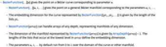 - The embedding dimension for the curve represented by BezierFunction[{pt1,pt2,…}] is given by the length of the lists pti.
