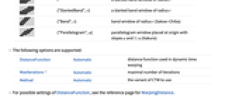 DistanceFunction Automatic distance function used in dynamic time warping MaxIterations Automatic maximal number of iterations Method Automatic the variant of CTW to use - For possible settings of DistanceFunction, see the reference page for WarpingDistance.