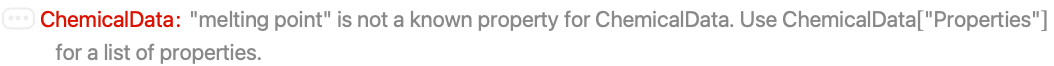 - ChemicalData["Properties"] gives a list of all properties available for chemicals.