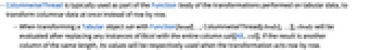 - ColumnwiseThread is typically used as part of the Function body of the transformations performed on tabular data, to transform columnar data at once instead of row by row.