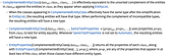 - When the classes appearing in ComplementedEntityClass effectively have the same type after the simplification in EntityList, the resulting entities will have that type. When performing the complement of incompatible types, the resulting entities will have a new type.