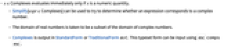 - Simplify[expr∈Complexes] can be used to try to determine whether an expression corresponds to a complex number.
