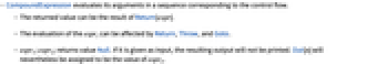 - CompoundExpression evaluates its arguments in a sequence corresponding to the control flow.
