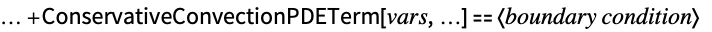 Wolfram Research (2020), ConservativeConvectionPDETerm, Wolfram Language function, https://reference.wolfram.com/language/ref/ConservativeConvectionPDETerm.html (updated 2025).