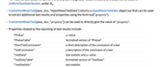 -value"TestDataTable" formatted version of "TestData" "TestStatistic" test statistic "TestStatisticTable" formatted "TestStatistic" - The following properties are independent of which test is being performed.