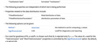 "FittedDistribution" fitted distribution of data "FittedDistributionParameters" distribution parameters of data - The following options can be given: