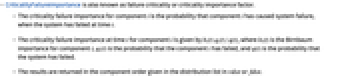 - CriticalityFailureImportance is also known as failure criticality or criticality importance factor.