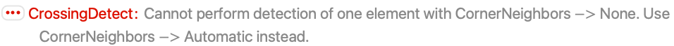 - CrossingDetect takes a CornerNeighbors option. The default setting is CornerNeighbors->True.