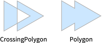 - CrossingPolygon[{p1,p2,…,pn}] is effectively equivalent to Polygon[{p1,p2,…,pn}].