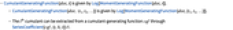 Wolfram Language. (2010). CumulantGeneratingFunction. Wolfram Language & System Documentation Center. Retrieved from https://reference.wolfram.com/language/ref/CumulantGeneratingFunction.html