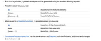 All impact on all the classes (default) name impact on class name only {name1,…} impact on a list of namei - CumulativeFeatureImpactPlot has the same options as Graphics, with the following additions and changes: [List of all options]