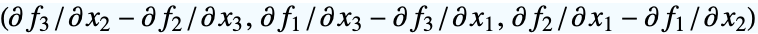 - If f is a scalar, Curl[f,{x1,…,xn},chart] returns an array of depth n-1 in the orthonormal basis associated with chart.
