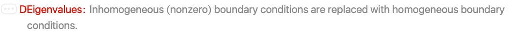 - Homogeneous DirichletCondition or NeumannValue boundary conditions may be included. Inhomogeneous boundary conditions will be replaced with corresponding homogeneous boundary conditions.