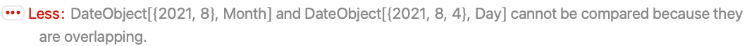 - In DateOverlapsQ[date1,date2], both date1 and date2 should be specified as DateObject expressions of any calendar granularity.