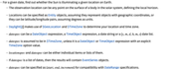 - For a given date, find out whether the Sun is illuminating a given location on Earth.