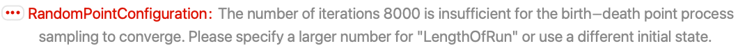 Automatic automatically choose the parameter estimator "MaximumPseudoLikelihood" maximize the pseudo-likelihood - DiggleGrattonPointProcess can be used with such functions as RipleyK and RandomPointConfiguration.