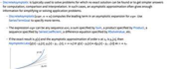 - DiscreteAsymptotic is typically used to solve problems for which no exact solution can be found or to get simpler answers for computation, comparison and interpretation. In such cases, an asymptotic approximation often gives enough information for simplifying or solving application problems.