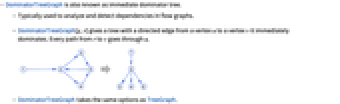 - DominatorTreeGraph[g,r] gives a tree with a directed edge from a vertex u to a vertex v it immediately dominates. Every path from r to v goes through u.