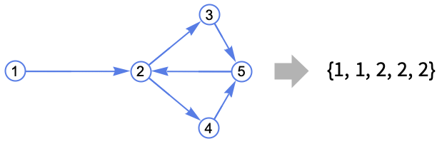 - For a graph g with vertices {u1,u2,…}, DominatorVertexList[g,r] gives a list of vertices {v1,v2,…} where every path from r to ui goes through vi.