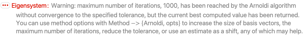 - The "Arnoldi" and "FEAST" methods take suboptions Method->{"name",opt1->val1,…}, which can be found in the Method subsection.