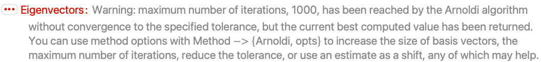 - The "Arnoldi" and "FEAST" methods take suboptions Method ->{"name",opt1->val1,…}, which can be found in the Method subsection.