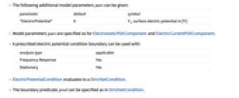 - ElectricPotentialCondition specifies a boundary condition for ElectrostaticPDEComponent and ElectricCurrentPDEComponent.