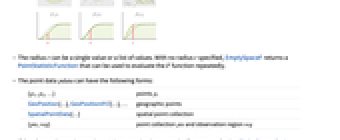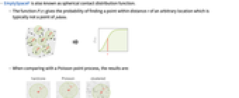- The radius r can be a single value or a list of values. With no radius r specified, EmptySpaceF returns a PointStatisticFunction that can be used to evaluate the